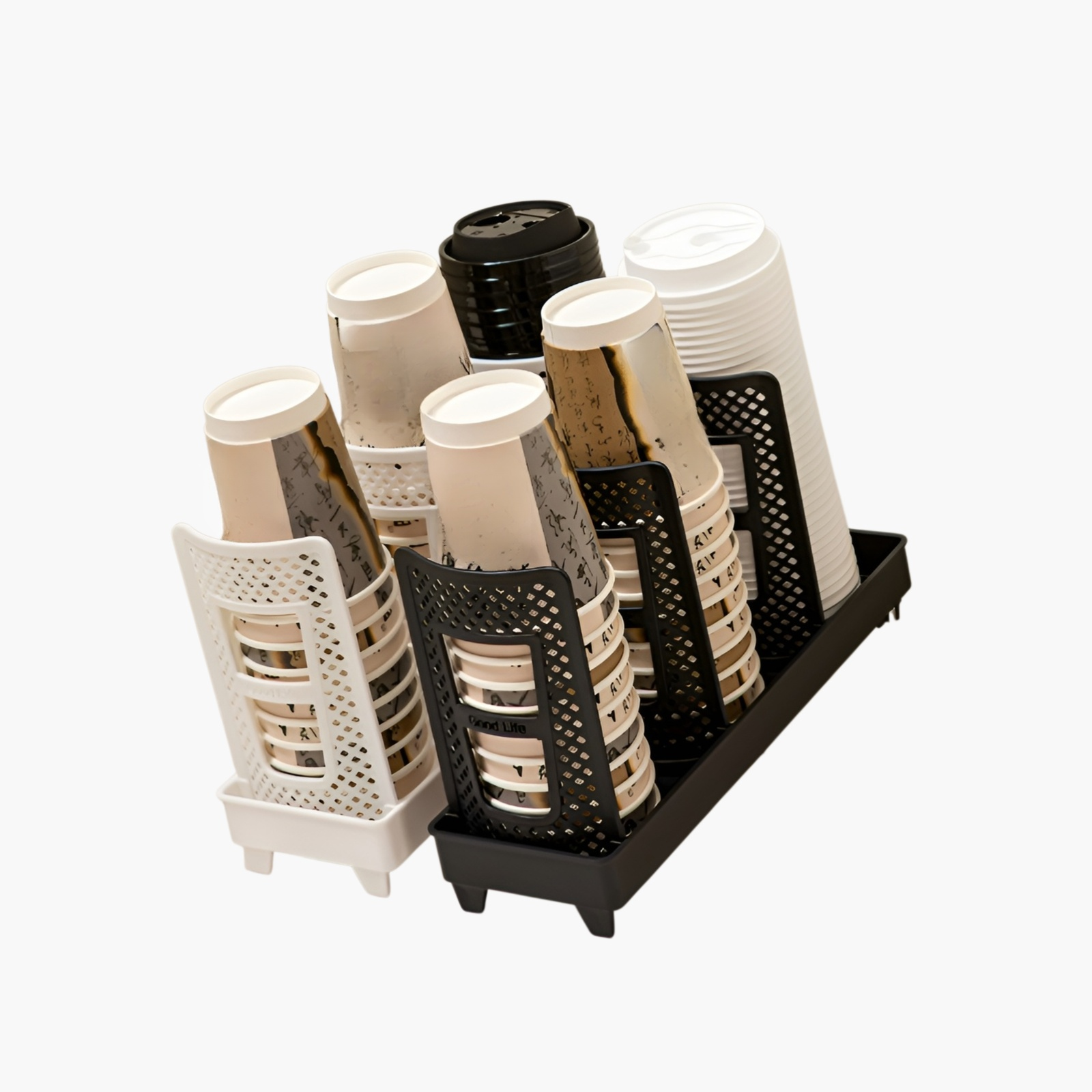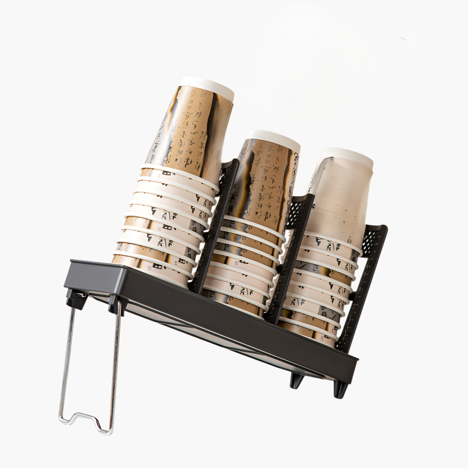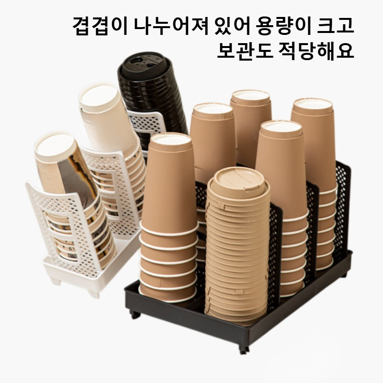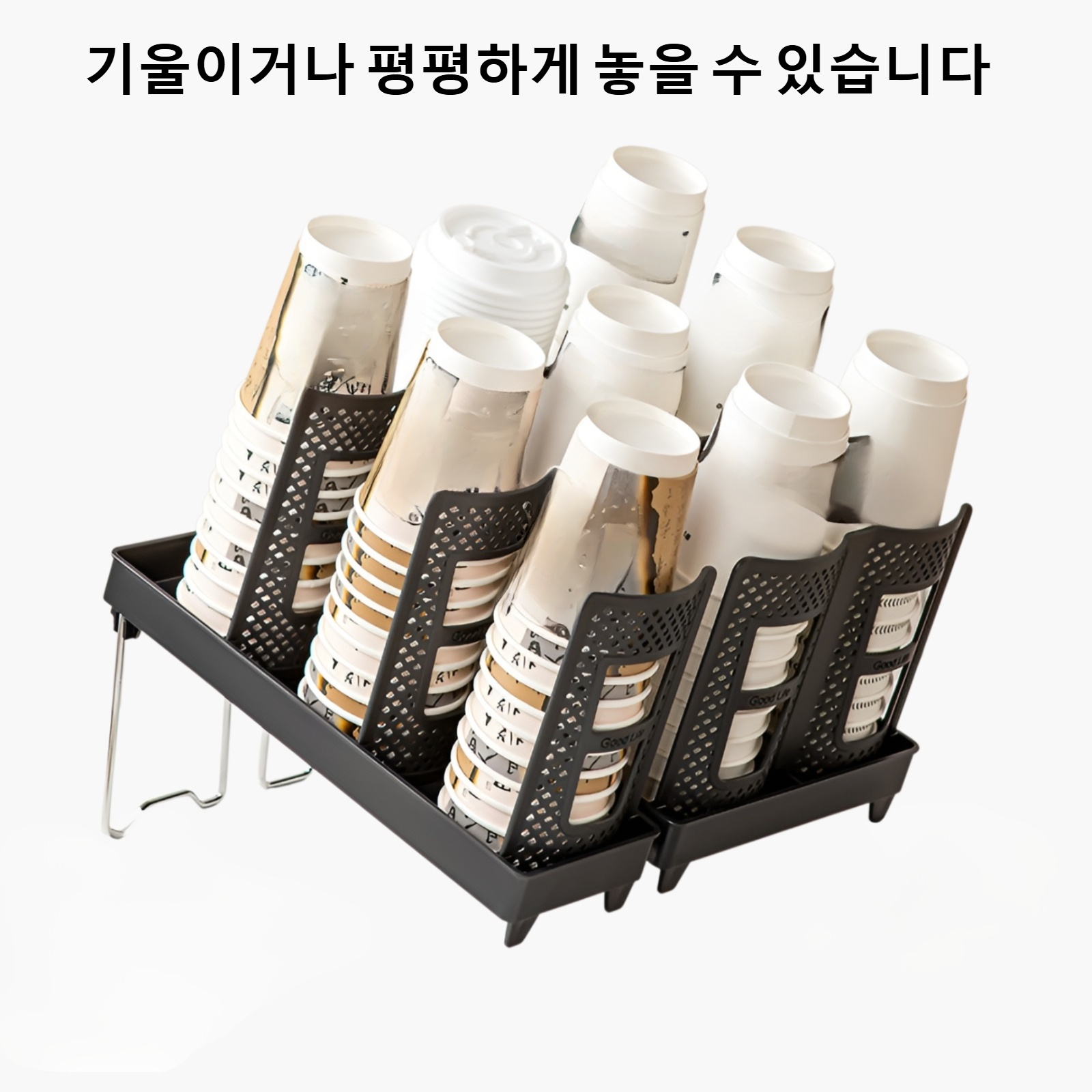 커피컵 보관대, 공간 절약과 깔끔한 정리, 다양한 컵 사이즈 호환, 튼튼한 내구성, 손쉬운 설치, 실용적인 디자인.
