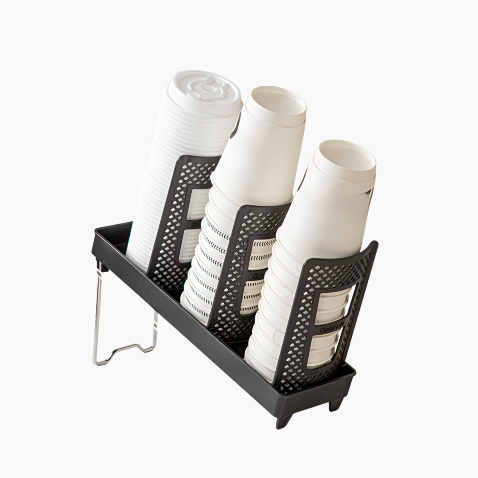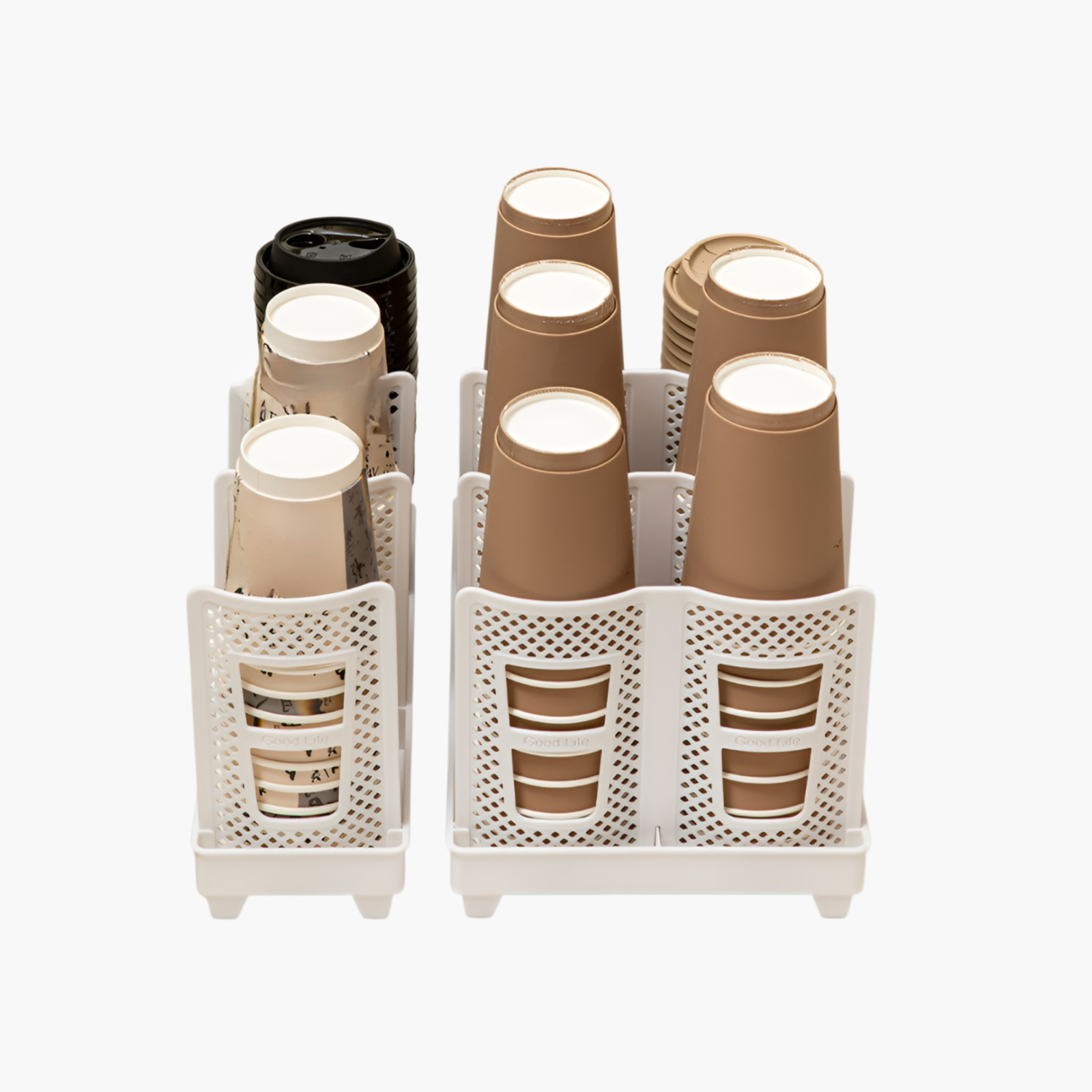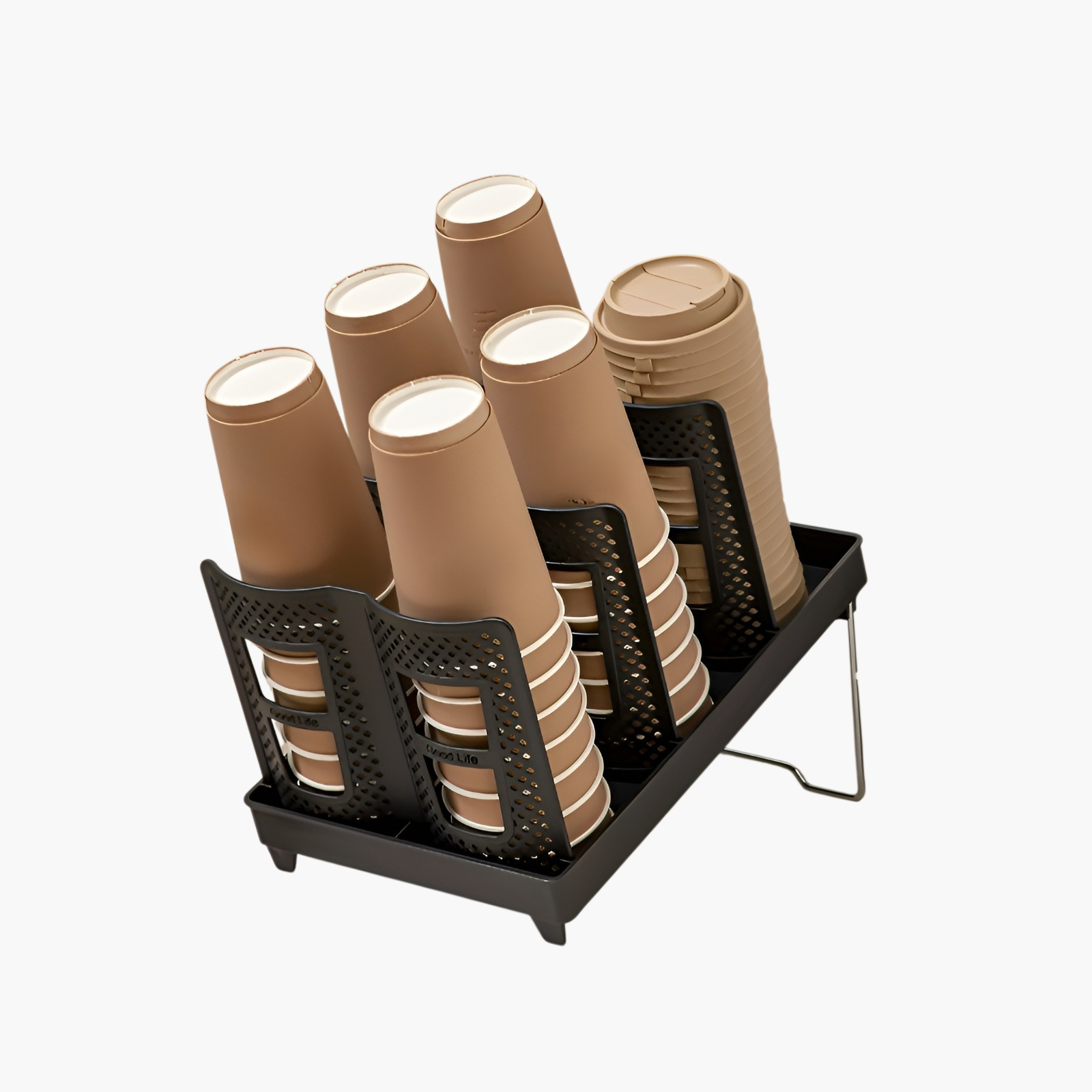 커피컵 보관대, 공간 절약과 깔끔한 정리, 다양한 컵 사이즈 호환, 튼튼한 내구성, 손쉬운 설치, 실용적인 디자인.